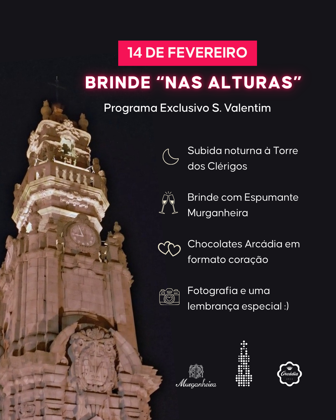 Há amizades, cumplicidade e histórias que pedem um momento especial. No dia de S. Valentim, os Clérigos convidam a celebrar os laços que importam, com uma experiência noturna no topo da Torre dos Clérigos.